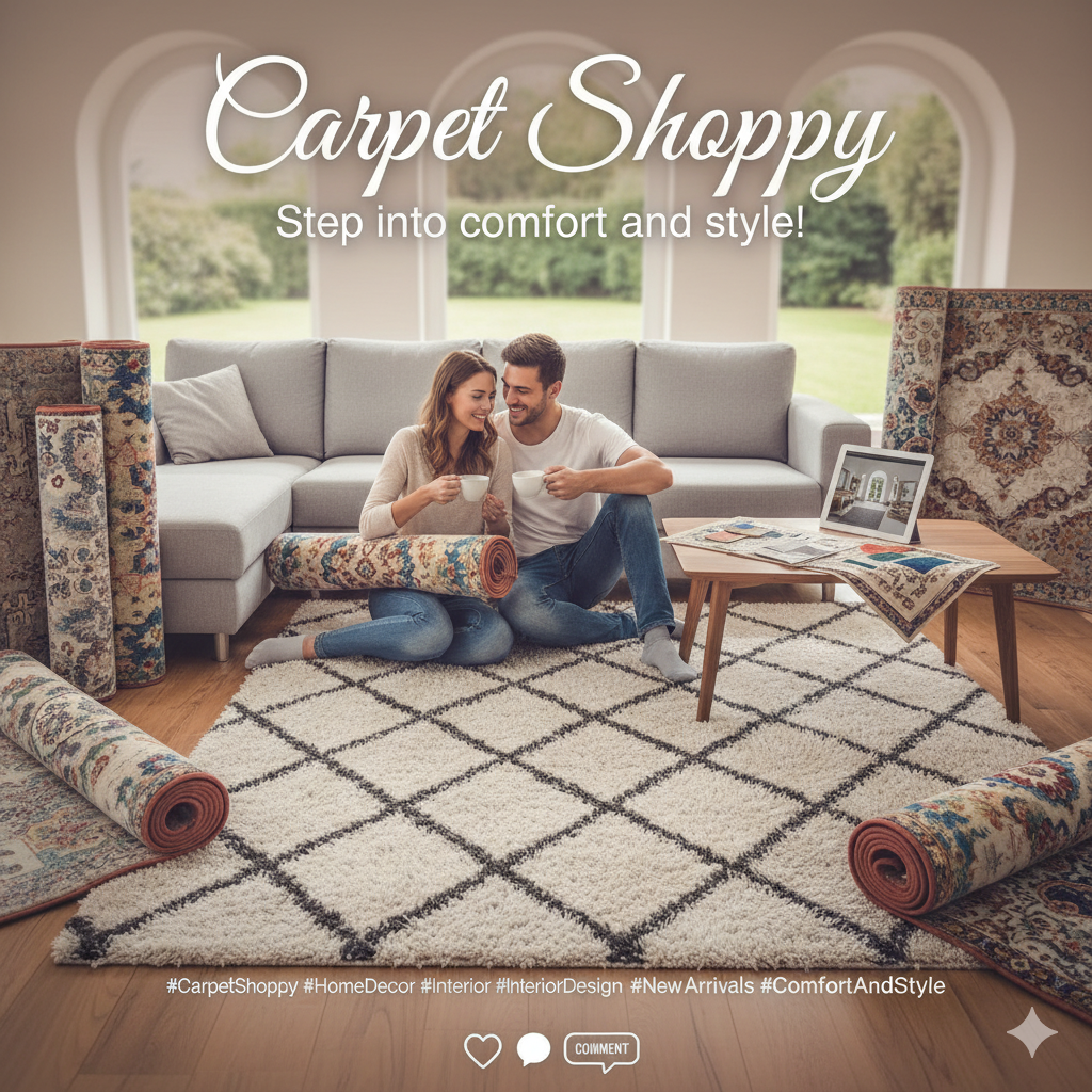 'Step into comfort and style with Carpet Shoppy! ✨ Transform your home with our exquisite collection of carpets, offering everything from plush textures to vibrant patterns. Discover the perfect rug to complement your decor and add warmth to every room. Visit us today and find the carpet of your dreams! #CarpetShoppy #HomeDecor #InteriorDesign #NewArrivals #ComfortAndStyle'