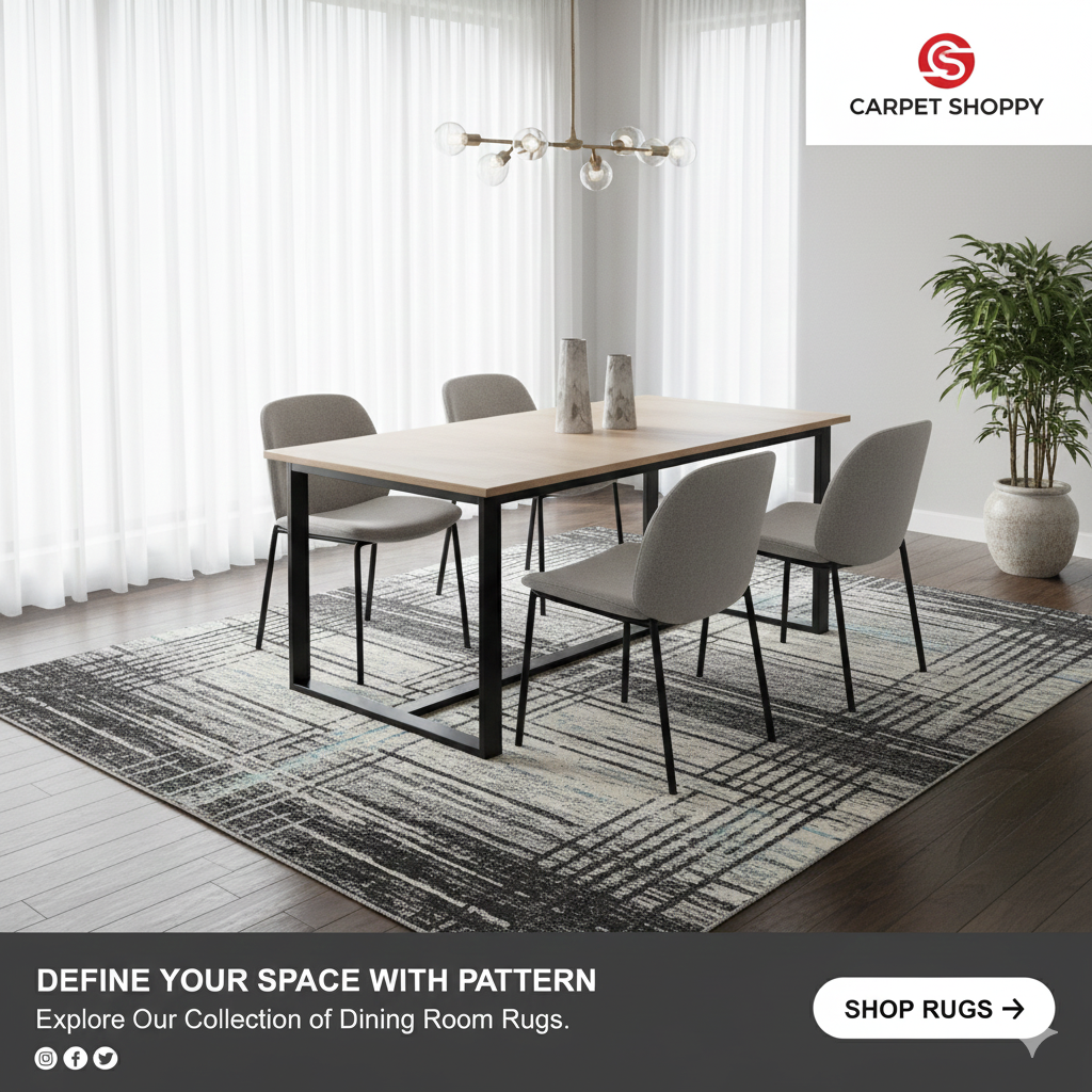 #CarpetShoppy #DiningRoomDecor #DefineYourSpace #GeometricRug #ModernDesign #EasyClean #HomeInspo #FloorStyling #AreaRugs