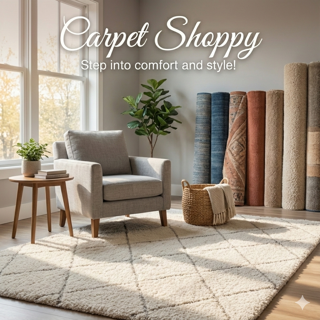 Hashtags: #CarpetShoppy #StepIntoComfort #HomeDecorInspo #CozyVibes #LivingRoomGoals #RugStyle #InteriorDesign #HomeMakeover