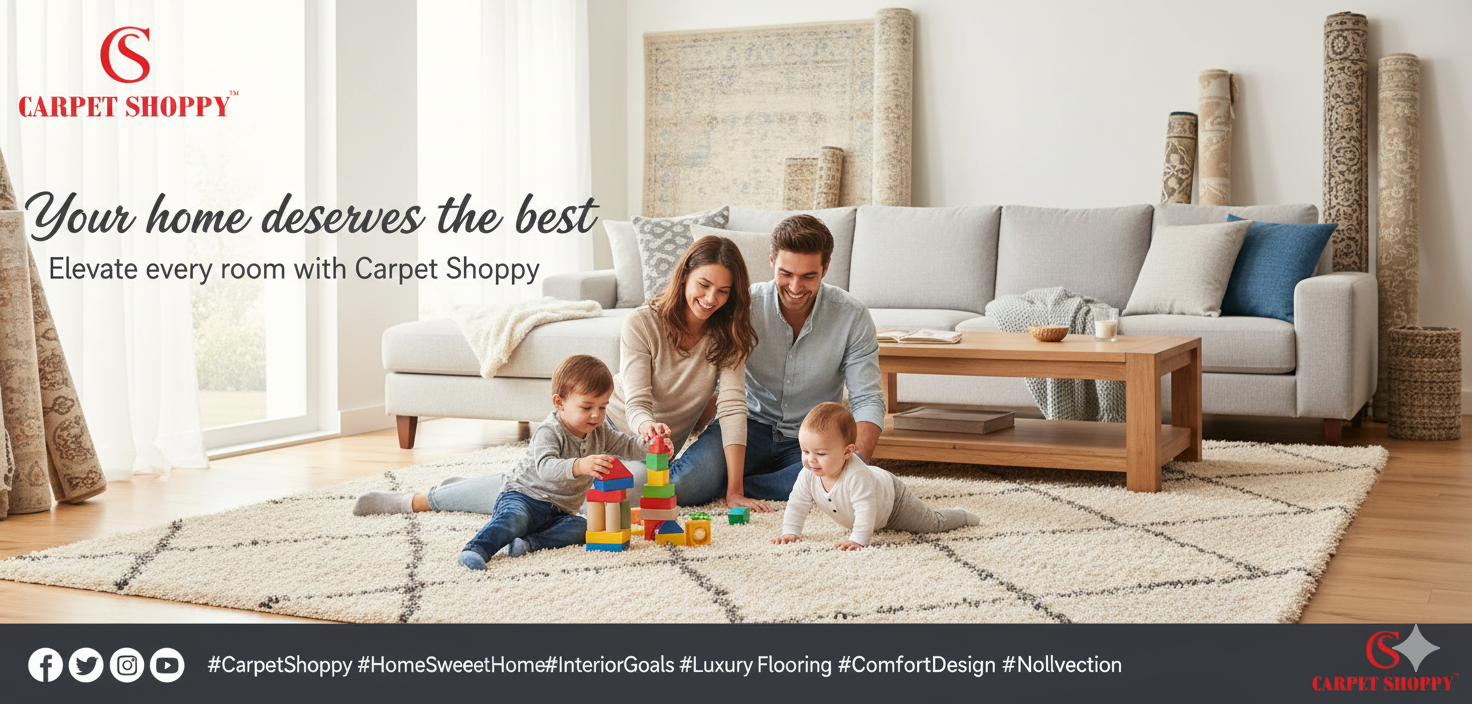 'Your home deserves the best, and Carpet Shoppy delivers! 🏡 Elevate every room with our exquisite collection of carpets, blending luxurious comfort with timeless style. Discover the perfect foundation for your cherished moments and create a space you'll adore. Visit us today and find your perfect match! #CarpetShoppy #HomeSweetHome #InteriorGoals #LuxuryFlooring #ComfortDesign #NewCollection'